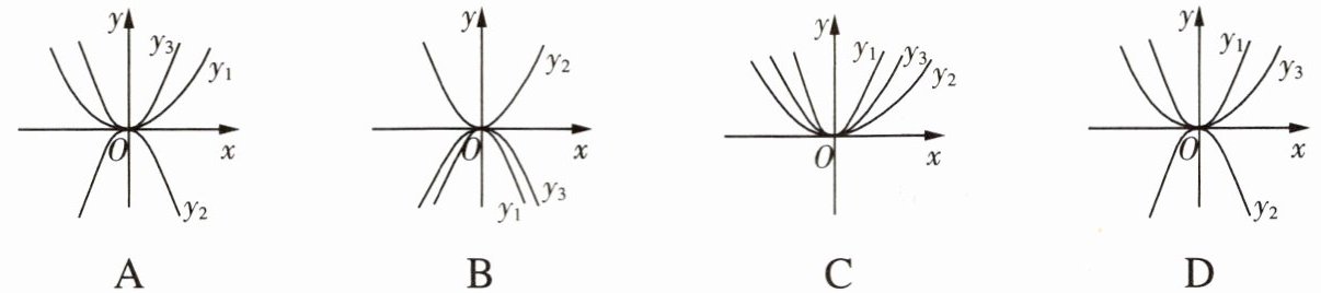 在同一坐标系中画出 $ y_1 = 2x^2 $,$ y_2 = -2x^2 $,$ y_3 = \frac{1}{2}x^2 $ 的图象,正确的是(