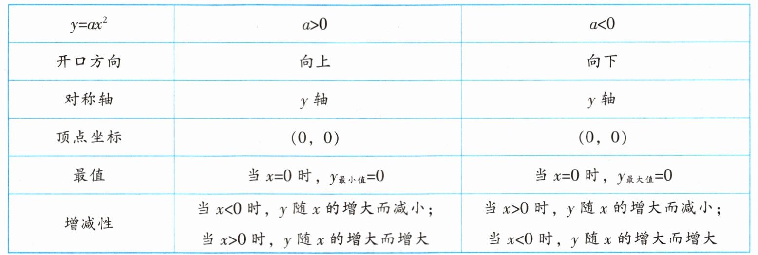 【知识点 2】二次函数 $ y = ax^2 $ 的图象的性质