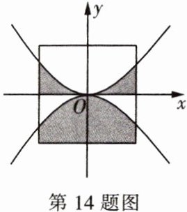 14. (2022·武汉)如图,正方形的边长为 $ 4 $,以正方形中心为原点建立平面直角坐标系,作出函数 $ y = \frac{1}{3}x^2 $ 与 $ y = -\frac{1}{3}x^2 $ 的图象,则阴影部分的面积是 ______。
