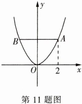 11. 已知二次函数 $ y = \frac{1}{2}x^2 $ 的图象如图所示,线段 $ AB // x $ 轴,交抛物线于 $ A $,$ B $ 两点,且点 $ A $ 的横坐标为 $ 2 $,则 $ AB $ 的长度为
