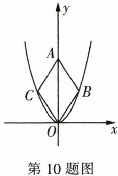 10. 二次函数 $ y = 2\sqrt{3}x^2 $ 的图象如图所示,点 $ O $ 为坐标原点,点 $ A $ 在 $ y $ 轴的正半轴上,点 $ B $,$ C $ 在函数图象上,四边形 $ OBAC $ 为菱形,且 $ \angle AOB = 30° $,则点 $ C $ 的坐标为(