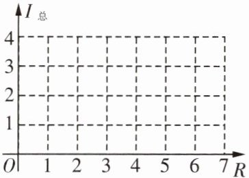② 描点, 连线: 在平面直角坐标系中, 以①给出的 $ R $ 的取值为横坐标, 以 $ I_{总} $ 相对应的值为纵坐标, 描出相应的点, 并将各点用光滑曲线顺次连接起来.