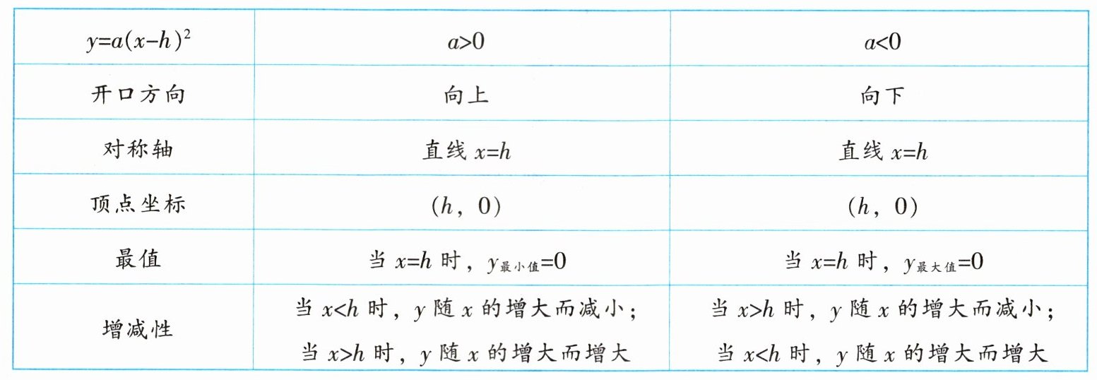 【知识点 2】二次函数 $ y = a(x - h)^2 $ 的性质