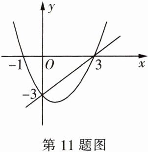 11.(2023·青岛)在平面直角坐标系中,抛物线 $ y = ax^{2}+bx + c $ 与直线 $ y = mx + n $ 如图所示,方程 $ ax^{2}+(b - m)x+(c - n)= 0 $ 的解为(