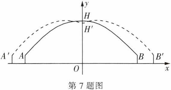 7. 解:设经过点A,B,H的抛物线的解析式为$y=ax^{2}+c$,根据题意,得$H(0,20)$,$B(40,4)$,代入$y=ax^{2}+c$,得$c=20$,解得$a=-\frac{1}{100}$,