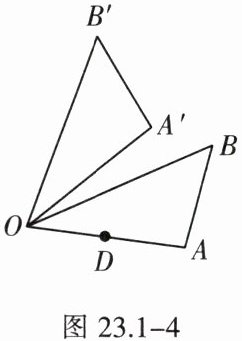 1. 如图 23.1 - 4,$\triangle A'OB'是由\triangle AOB$绕点 $O$ 按逆时针方向旋转 $45^{\circ}$得到的。点 $B$ 的对应点是点