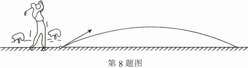 8. 如图,以一定的速度将小球沿与地面成一定角度的方向击出时,小球的飞行路线是一条抛物线.若不考虑空气阻力,小球的飞行高度 $ h $(单位:m)与飞行时间 $ t $(单位:s)之间具有函数关系 $ h = -5t^{2} + 20t $($ 0 \leq t \leq 4 $).有下列结论: