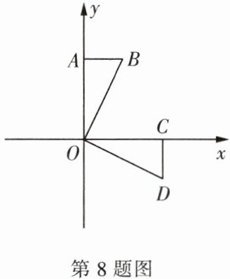 8. (2024·自贡) 如图,在平面直角坐标系中,$D(4,-2)$,将 $Rt\triangle OCD$ 绕点 $O$ 逆时针旋转 $90^{\circ}$ 到 $\triangle OAB$ 位置,则点 $B$ 坐标为(