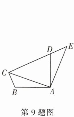 9. (2024·广元) 如图,将 $\triangle ABC$ 绕点 $A$ 顺时针旋转 $90^{\circ}$ 得到 $\triangle ADE$,点 $B$,$C$ 的对应点分别为点 $D$,$E$,连接 $CE$,点 $D$ 恰好落在线段 $CE$ 上,若 $CD = 3$,$BC = 1$,则 $AD$ 的长为(