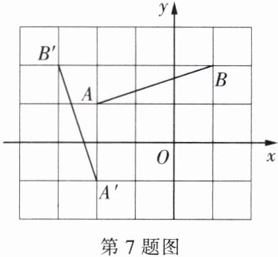 7. 如图,平面直角坐标系 $xOy$ 中,点 $A$、点 $B$ 的坐标分别为 $(-2,1)$ 和 $(1,2)$,将线段 $AB$ 绕点 $P$ 逆时针方向旋转 $90^{\circ}$ 得到线段 $A'B'$,点 $A$ 的对应点为点 $A'$,点 $B$ 的对应点为点 $B'$,点 $A'$,点 $B'$ 的坐标分别为 $(-2,-1)$ 和 $(-3,2)$.
