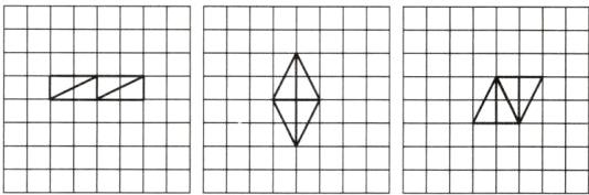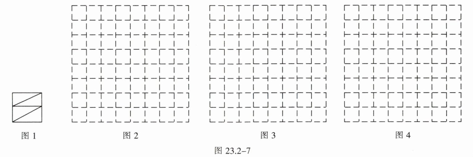 【例】如图,每个格为 1 个单位长度的网格中,边长为 2 个单位长度的正方形被分成 4 个全等的直角三角形,请你用这 4 个全等的直角三角形在下面三个网格中分别重新拼接成一个新的四边形,要求新的四边形是中心对称图形.