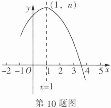 10. 如图,抛物线 $ y = ax^{2} + bx + c $($ a \neq 0 $),其顶点坐标为 $ (1, n) $,且与 $ x $ 轴的一个交点在 $ (3, 0) $ 和 $ (4, 0) $ 之间,下列结论不正确的是(