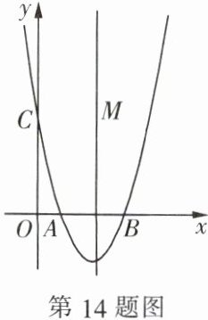14. 如图,抛物线 $ y = 2x^{2} - 8x + 6 $ 与 $ x $ 轴分别交于 $ A $,$ B $ 两点(点 $ A $ 在点 $ B $ 的左侧),与 $ y $ 轴交于点 $ C $,在其对称轴上有一动点 $ M $,连接 $ MA $,$ MC $,$ AC $,则当 $ \triangle MAC $ 的周长最小时,点 $ M $ 的坐标是