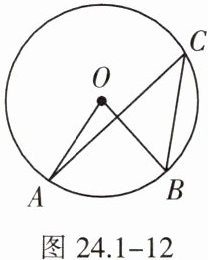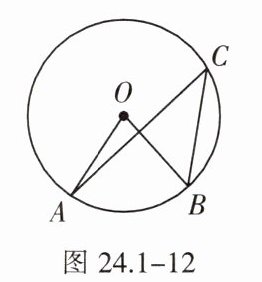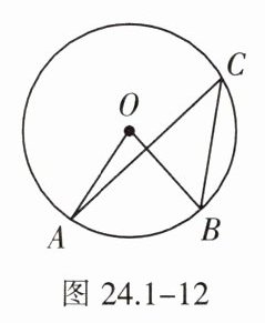 1. 如图 24.1 - 12,点 $ A $,$ B $,$ C $ 都在 $ \odot O $ 上,若 $ \angle C = 34^{\circ} $,则 $ \angle AOB $ 为(