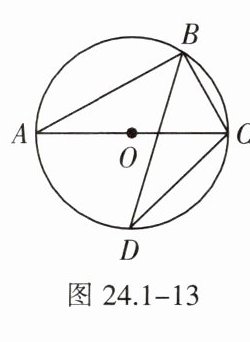 2. 如图 24.1 - 13,$ \triangle ABC $ 内接于 $ \odot O $,$ AC $ 是 $ \odot O $ 的直径,$ D $ 是 $ \odot O $ 上一点,连接 $ BD $,$ CD $,若 $ \angle ACD = 41^{\circ} $,则 $ \angle DBC $ 的度数是