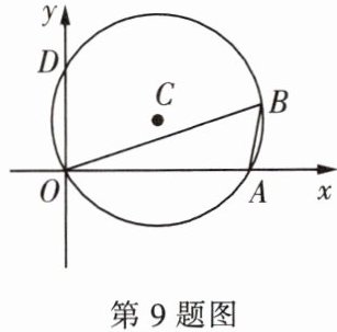 9. 如图,$ \odot C $ 经过原点 $ O $,并与两坐标轴相交于 $ A $,$ D $ 两点,已知 $ \angle OBA = 60^{\circ} $,点 $ D $ 的坐标是 $ (0, 2) $,则圆的半径为