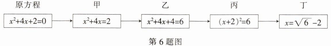 6. 老师设计了接力游戏,用合作的方式完成配方法解方程. 规则:每人只能看到前一人给的方程,并进行一步计算,再将结果传递给下一人,最后解出方程,过程如图所示. 接力中,自己负责的一步出现错误的是(