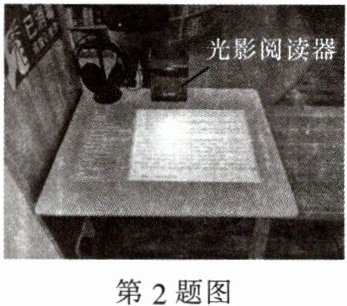 2. 如图是某图书馆引进的一款阅读设备——AI光影阅读器,它利用了激光投影和成像技术,开机后该设备将资源投影到白色桌面上,直接在桌面上用手进行触控操作,犹如在手机上操作一样简单。下列关于此设备的说法正确的是(