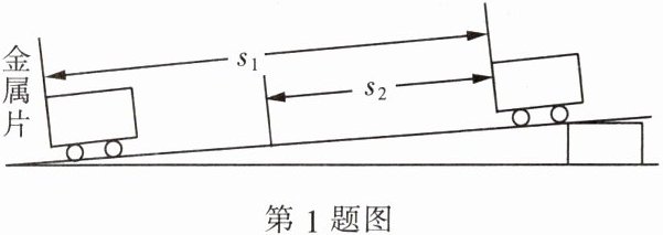 (选填“大”或“小”),这样可以减小测量的误差。(3)小车通过全程$s_{1}$所用的时间为t_{1},通过上半段路程$s_{2}$所用的时间为t_{2},则小车通过下半段路程的平均速度为