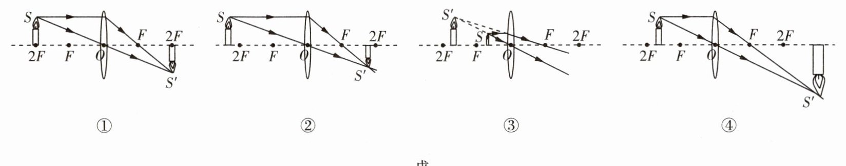 )(2) 如图丁,将F光源、水透镜和光屏依次放在光具座上。固定水透镜位置,调节F光源、光屏位置直至光屏上出现清晰的像。光屏上的像是倒立、缩小的实像,F光源远离凸透镜,光屏上的像变模糊。向水透镜
