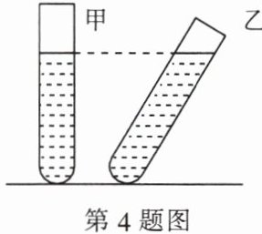 4. 如图所示,两支完全相同的试管分别装有质量相等的不同液体,甲竖直放置,乙倾斜放置,此时液面恰好相平,比较两种液体密度的大小。下列结果正确的是(
