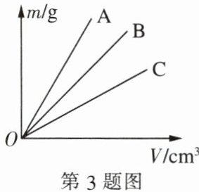 3. 如图所示是A、B、C三种物质的质量m与体积V的关系图像,则三种物质的密度之间的大小关系是(
