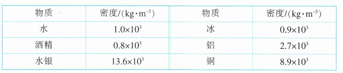 6. (多选) 李同学根据下表所提供的几种物质的密度(常温常压下),得出以下四个结论,其中正确的是(