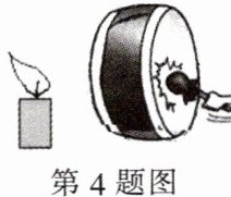 4. 如图所示,在鼓的一侧放一支点燃的蜡烛,敲击另一侧的鼓面,会发现烛焰摇曳甚至熄灭,这说明声能够传递