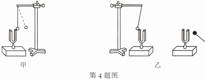 4. 如图甲所示,用竖直悬挂的泡沫塑料球接触发声的音叉时,泡沫塑料球被弹起,这个现象说明声音是由
