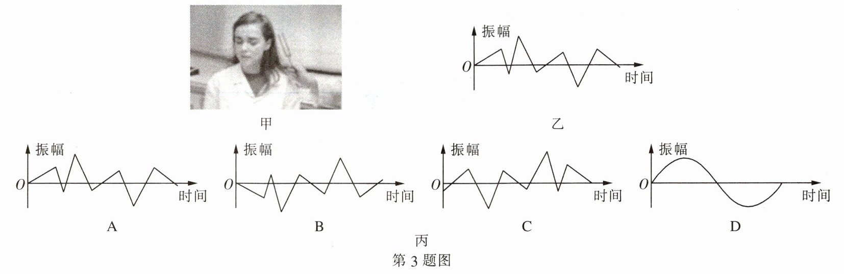 (4)如图乙所示为噪声源在空间某点产生的噪声振动波形,则消声源在该点的振动应为图丙中