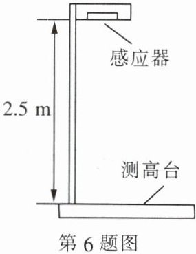 6. 如图所示为一种身高测量仪,其顶部的感应器竖直向下发射超声波信号,经下方物体反射后返回,被感应器接收。某同学站上测高台,感应器记录信号从发射到接收所经历的时间为$5×10⁻^3 s。$已知感应器距测高台的高度为2.5 m,空气中的声速取340 m/s,则该同学的身高为(