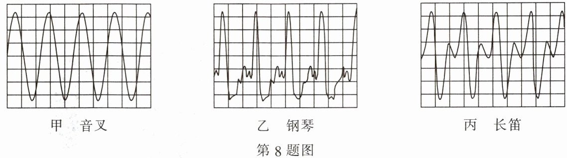 8. 如图所示,分别是音叉、钢琴和长笛发出的C调1(do)的波形图,下列说法正确的是(