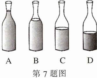 7. 如图所示,在A、B、C、D四个相同的玻璃瓶中,装入高度不同的水,下列说法正确的是(