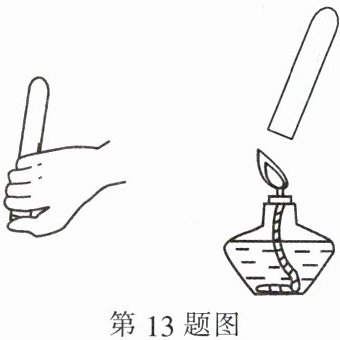 13. 如图所示,化学老师检验氢气纯度时,用拇指堵住集满氢气的试管口,靠近火焰,移开拇指点火,会发出尖锐的爆鸣声或很小的声音,根据声音的不同来判断氢气纯度,说明声可以传递