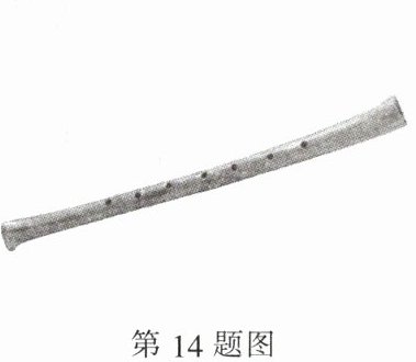 14. 1987年我国发现了公元前6000年前的一支完整骨笛——贾湖骨笛(如图所示),它是由丹顶鹤尺骨制成的,上有七个音孔。演奏时用手指控制不同音孔的开闭,使它发出声音的