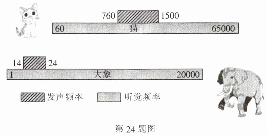 (1)故事《大象招聘》中有这样的描述,大象办的农场饱受老鼠的困扰,大象想招聘一些猫来灭鼠。如图为猫和大象的发声和听觉的频率范围(单位为Hz)。