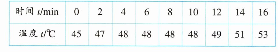 ℃。(4) 实验中,观察到在第4 min开始出现液体,第10 min全部变为固体。记录的实验数据如下表。根据表中的数据,在坐标纸上画出温度与时间的关系图像。
