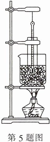 5. 把盛有碎冰块的试管插入烧杯里的碎冰块中,用酒精灯对烧杯底部略微加热,如图所示。当烧杯中的冰块有大半熔化时,观察到试管中的冰块并没有熔化。已知信息:①两个物体间存在温度差就会发生热传递;②发生热传递时,热量会从温度高的物体传到温度低的物体。