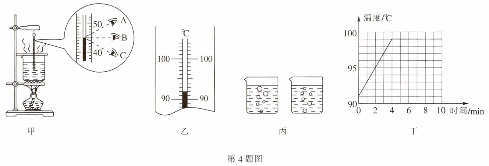4. 某小组在探究“水沸腾前后温度变化特点”的实验中,实验装置如图甲所示。