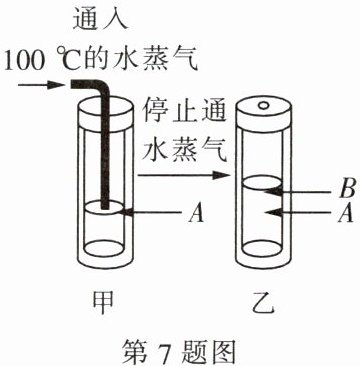 7. 人们都说:“被 $100^{\circ}C$ 的水蒸气烫伤,要比被 $100^{\circ}C$ 的开水烫伤严重得多。”王同学认为这是因为 $100^{\circ}C$ 的水蒸气和 $100^{\circ}C$ 的开水温度虽然一样,但 $100^{\circ}C$ 的水蒸气变成 $100^{\circ}C$ 的热水时,会放出热量。对此,王同学设计了以下实验证明自己的观点。