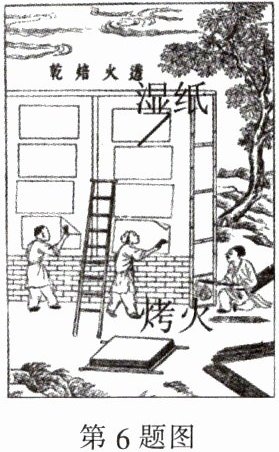 6. 《天工开物》记载的“透火焙干”是造纸的一道工序,其做法是将刚生产出的湿纸张贴在烤火的墙上(如图所示)。给墙壁烤火能加快湿纸变干的主要原因是(