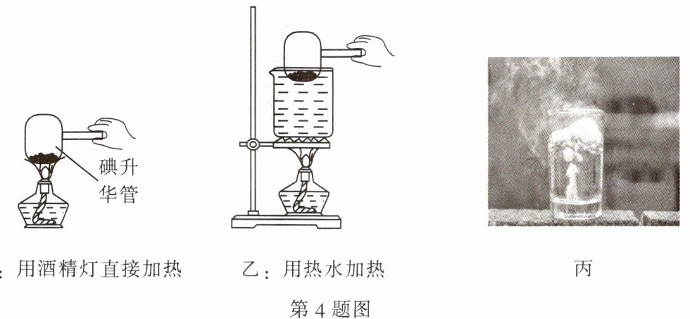 4. 某同学在“观察碘升华”的实验中,设计了如图甲、乙所示的两种实验方案。