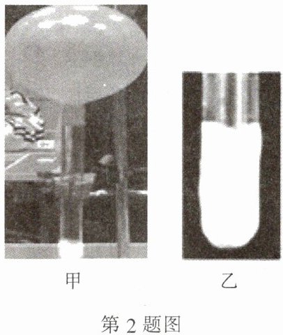 2. 把干冰放入试管中,在试管口套气球,如图甲所示。气球体积会逐渐变大,这是干冰