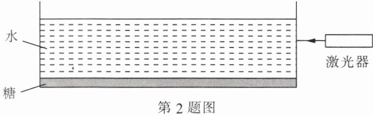 2. 光在同种不均匀介质的传播路径是怎样的呢?请你根据图中所示方向入射光束,观察光在不均匀液体中的传播情况。