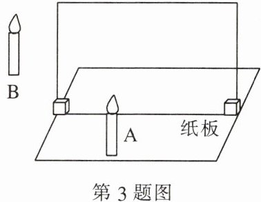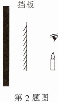 2. 某同学在探究“平面镜成像”的实验中,把一个不透明的木板竖直放在镜后如图所示的位置,则人眼