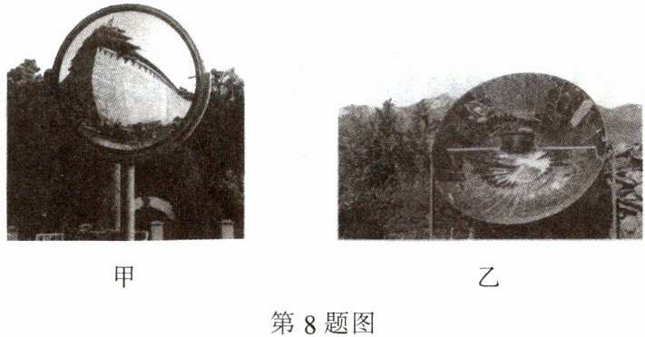 8. 汽车的后视镜和街头路口转弯处的反光镜(如图甲)都是