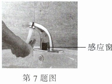 7. 如图是一种常见的红外感应水龙头,当用手遮挡红外线感应窗时,感应窗发出的红外线照射到手上发生了