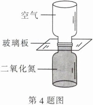 4. 如图所示是气体扩散的实验。抽掉玻璃板,几分钟后,两个瓶子内的气体会混合在一起,且颜色变得均匀。关于这一现象,下列说法中正确的是(