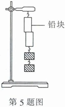 5. 如图所示,将两个表面光滑的铅块相互紧压,它们会粘在一起,下方可以挂起重物。该现象主要说明了(