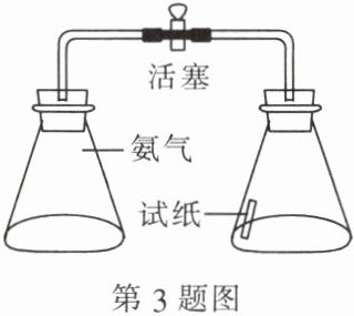 3. 如图所示,一只锥形瓶中灌入氨气,另一只锥形瓶内壁贴一条浸过酚酞溶液的试纸。打开活塞,一会儿就可以看到试纸逐渐变红。这个现象主要表明(